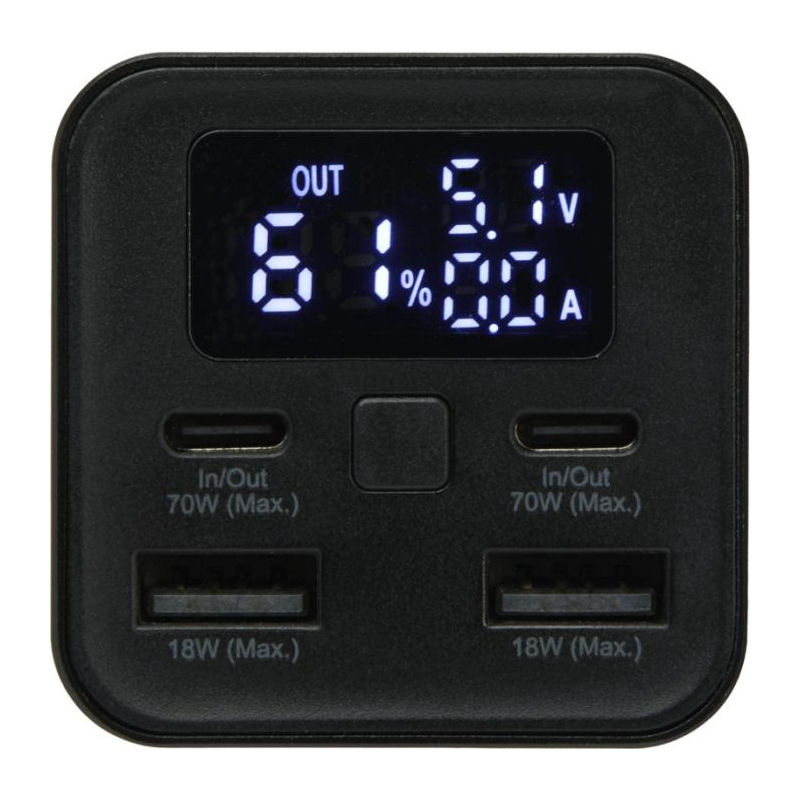 Ses deux ports Type-C 70 W et deux ports USB-A 18 W permettent de recharger simultanément ordinateurs portables, tablettes et smartphones.