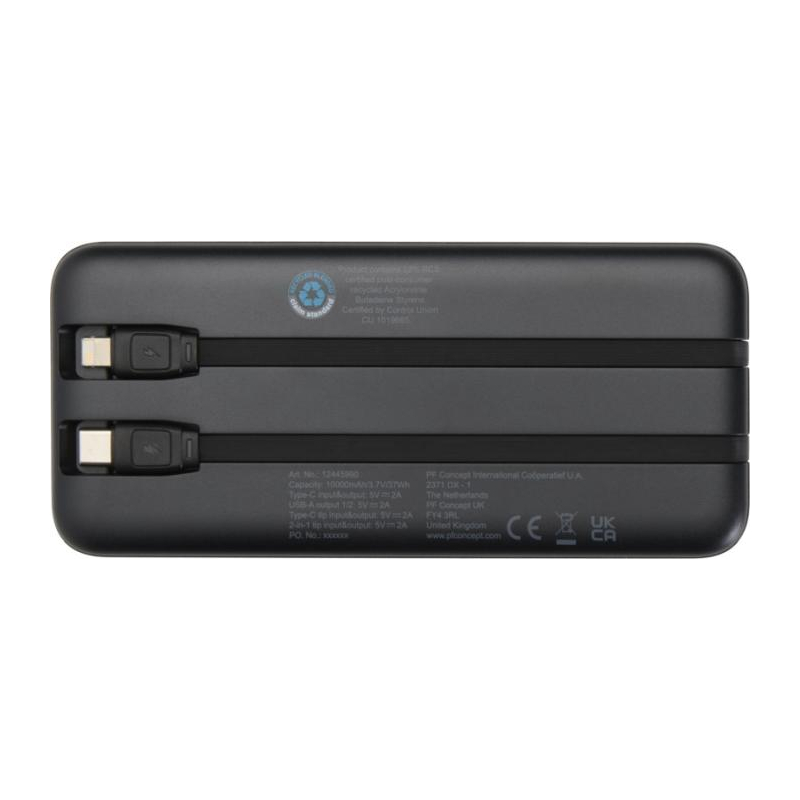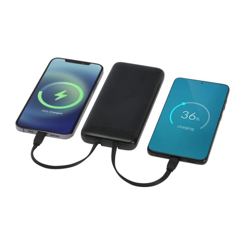 Fabriquée en plastique recyclé, la batterie Adhil se distingue par son design compact et ses deux câbles intégrés. Adaptée à tous les usages, elle offre une charge rapide et polyvalente, idéale pour accompagner vos collaborateurs ou clients en déplacement.