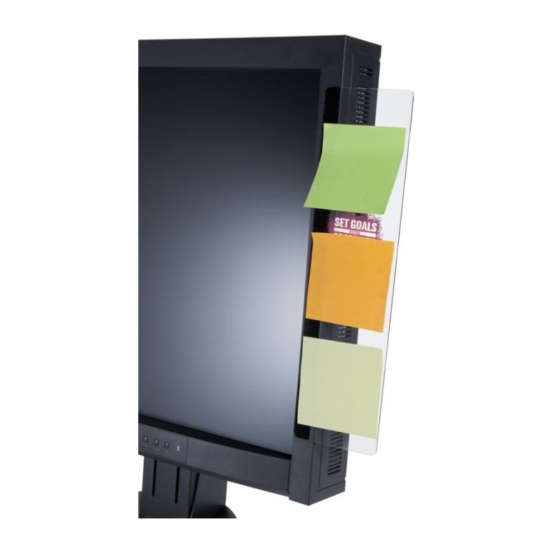 Ce panneau latéral en acrylique se fixe directement sur le côté d’un écran d’ordinateur afin de créer une surface verticale supplémentaire. Il permet d’afficher des notes autocollantes ou d’écrire avec des marqueurs à base d’eau sur une zone dédiée.