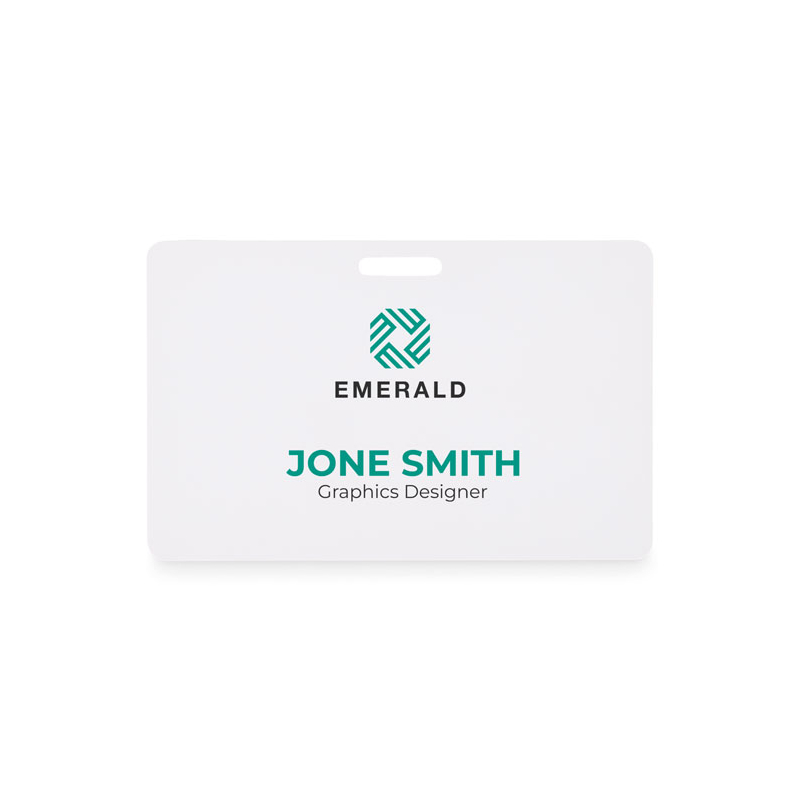• Type : badge rectangulaire rigide pour lanyard.