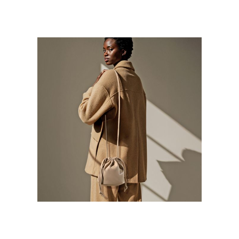 Confectionné en polyuréthane lisse, ce modèle séduit par sa silhouette épurée et sa fermeture à cordon, offrant un rendu chic et minimaliste. Sa bandoulière assortie assure un port confortable au quotidien, qu’il s’agisse d’un usage en boutique, d’un événement ou d’une dotation soignée.