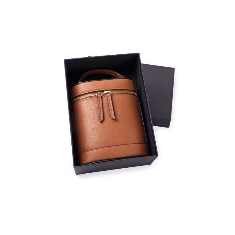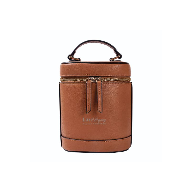 Conçu en polyuréthane lisse, ce sac à main combine une silhouette cylindrique soignée et une double poignée rigide, offrant un style tendance et intemporel. Sa fermeture zippée à double tirette dorée assure un usage pratique et sécurisé au quotidien.