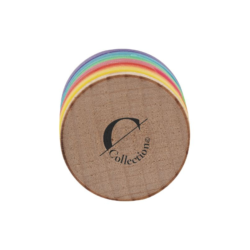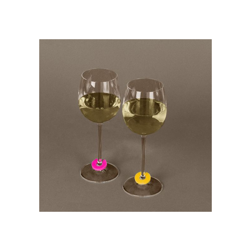 Composé d’un bouchon en liège surmonté d’une partie en bois naturelle, ce modèle allie authenticité et fonctionnalité. Ses anneaux colorés en silicone se fixent à la base des verres pour différencier les boissons avec simplicité et style.