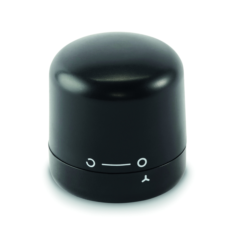 Fabriqué en ABS recyclé (acrylonitrile butadiène styrène), il est équipé d’un mécanisme de verrouillage rotatif. Son format cylindrique compact s’installe sur le goulot par pression puis rotation de la bague inférieure.