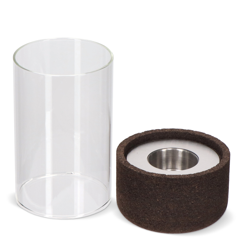 Sa conception en verre borosilicate associée à une base en liège crée une signature esthétique douce et minimaliste.