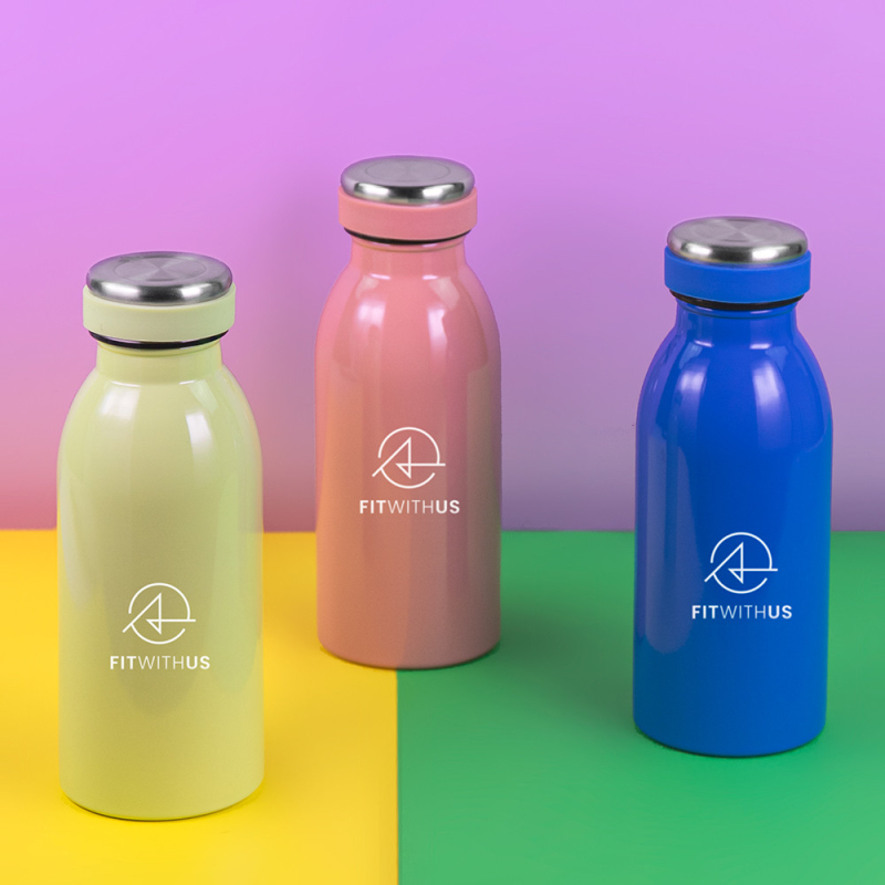 Bouteille personnalisable en acier inoxydable à double paroi de 350 ml. Idéale pour les enfants de vos clients et collaborateurs.