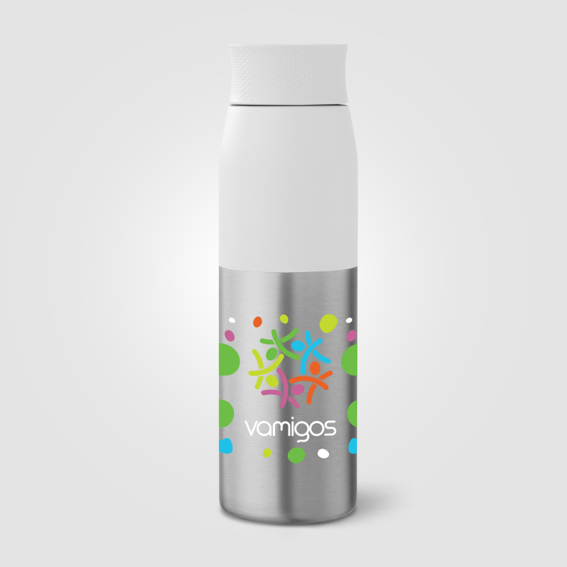 Une bouteille publicitaire isotherme en acier recyclé, pratique et moderne.