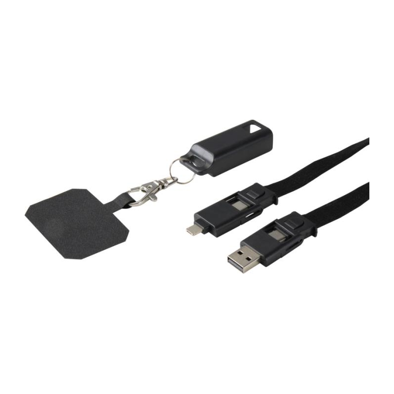 Conçu en plastique recyclé, le modèle Franz combine praticité et visibilité. Il réunit un câble de charge rapide 5 en 1 de 65 W et un support de transport pour smartphone, parfait pour les collaborateurs en mobilité ou les événements connectés.