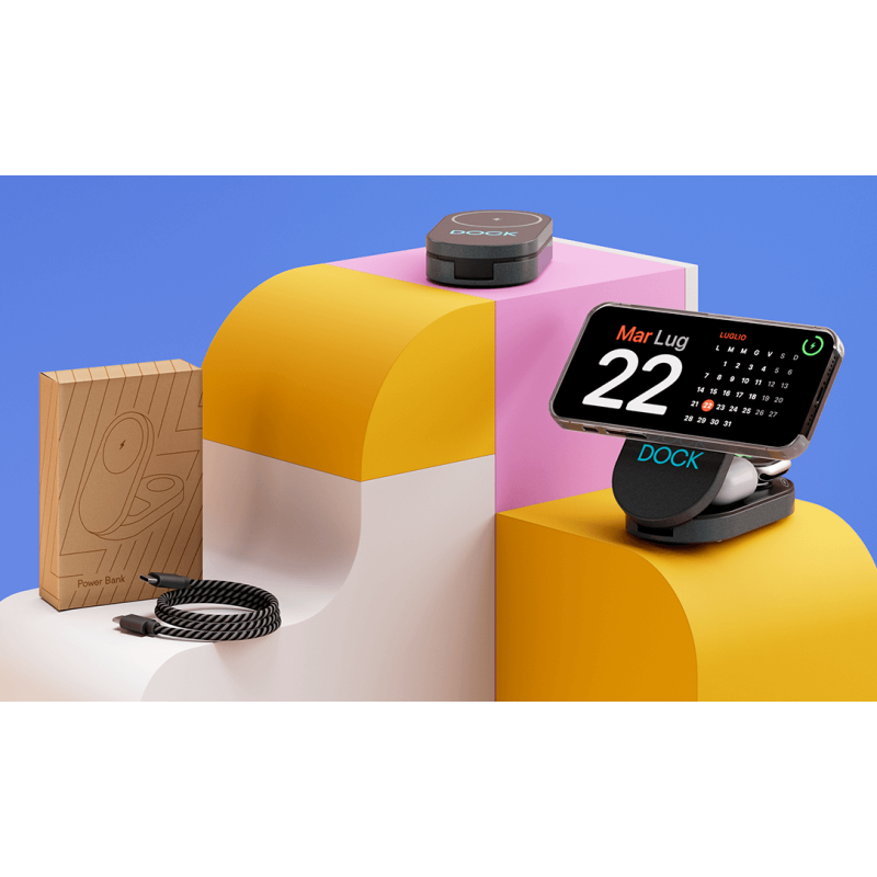 Compacte et pliable, Dock regroupe la recharge de trois appareils en un seul support pratique : smartphone, iWatch et écouteurs. Sa conception en aluminium recyclé allie utilité et engagement environnemental.