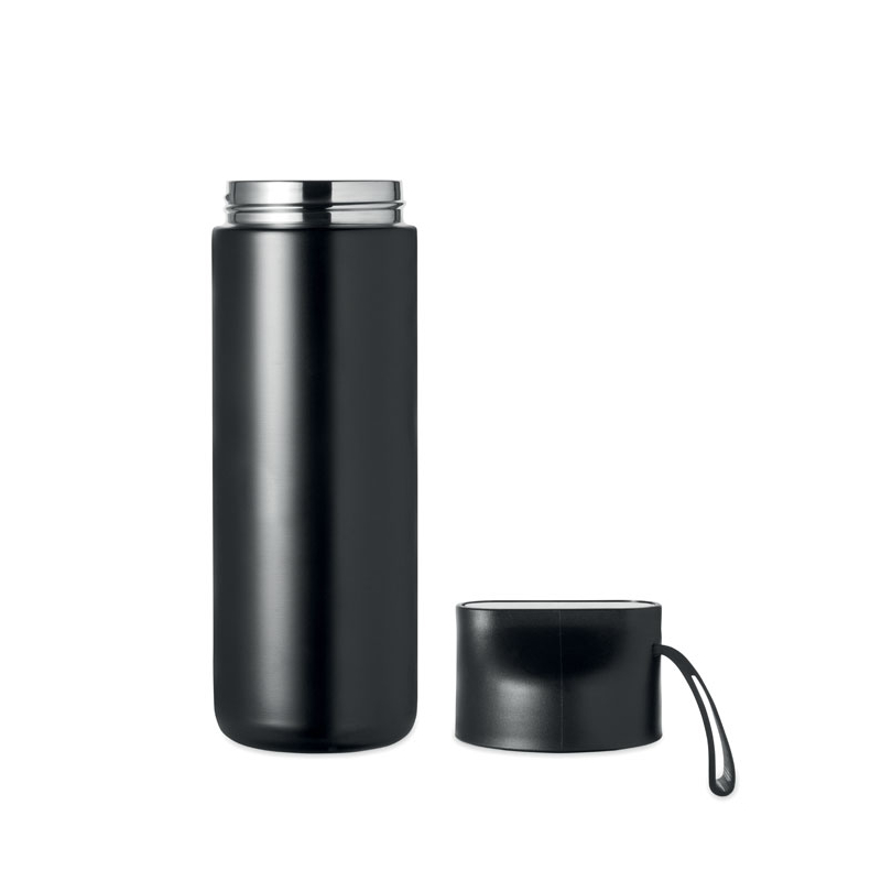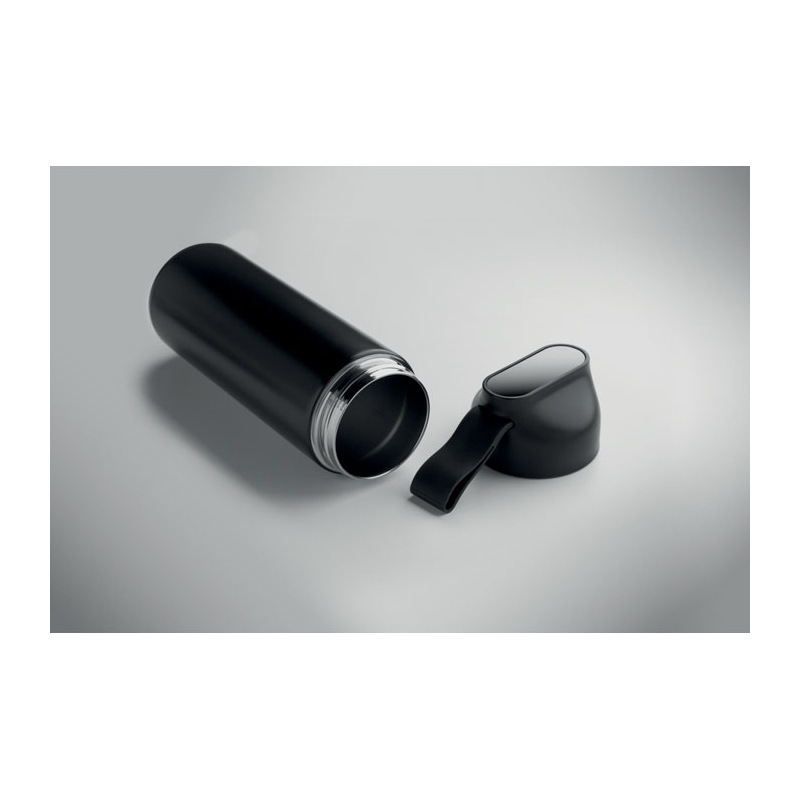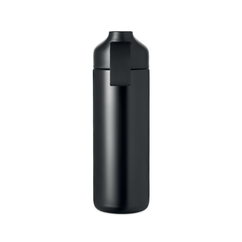 • Bouteille : acier inoxydable (90 % recyclé, 10 % acier inoxydable), double paroi, capacité 600 ml, couvercle en plastique PP (polypropylène) avec détails métalliques et poignée en silicone.