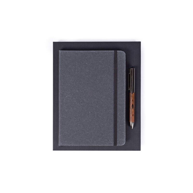 • Contenu : carnet A5 + stylo à bille encre bleue.