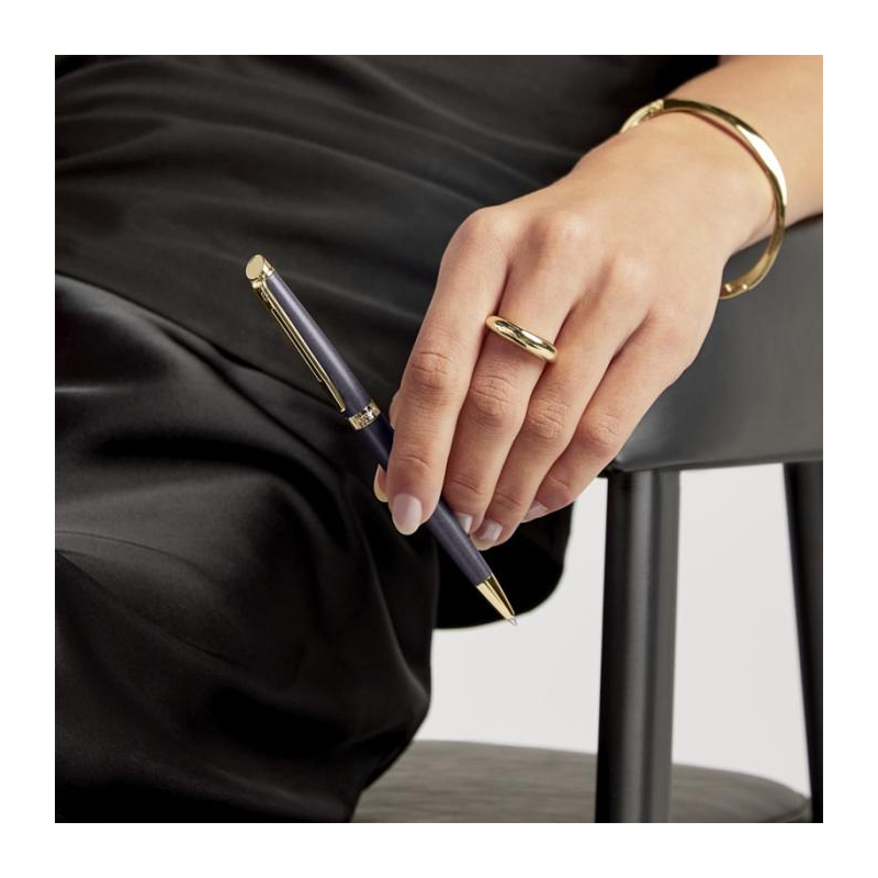 Sa silhouette élancée, inspirée du « luxe discret », associe un corps et un capuchon à finition laquée métallique rehaussés d’une garniture en or clair. Le clip Waterman à double branche, finement travaillé, souligne la qualité premium de ce modèle au design toutes saisons.