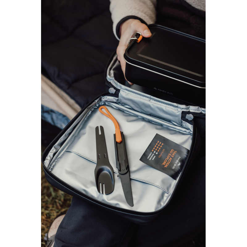 • Composition : fourchette, couteau et cuillère intégrés dans un format compact.