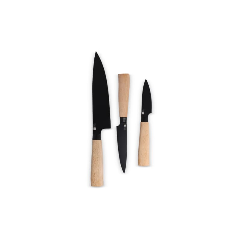 • Contenu : trois couteaux — chef 20 cm, cuisine 12,5 cm, office 9 cm.