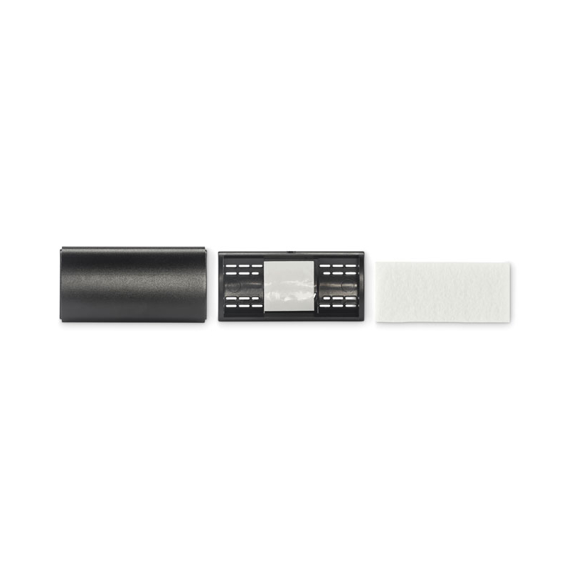 Son capot en aluminium accueille la personnalisation sur une surface frontale plane. À l’intérieur, un insert en feutre RPET (polyester recyclé) est destiné à recevoir un arôme liquide, non fourni.