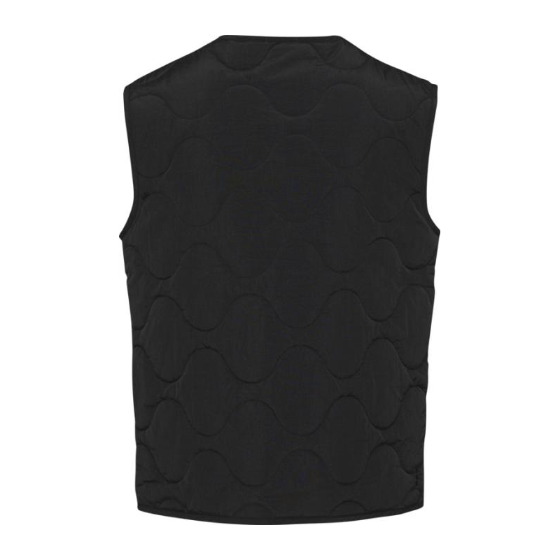Fabriqué en nylon recyclé certifié GRS, il se distingue par son effet froissé subtil et sa texture visuelle élégante. Son matelassage léger de 110 g procure une isolation douce sans alourdir la silhouette, idéale pour la mi-saison ou comme couche intermédiaire sous une veste.