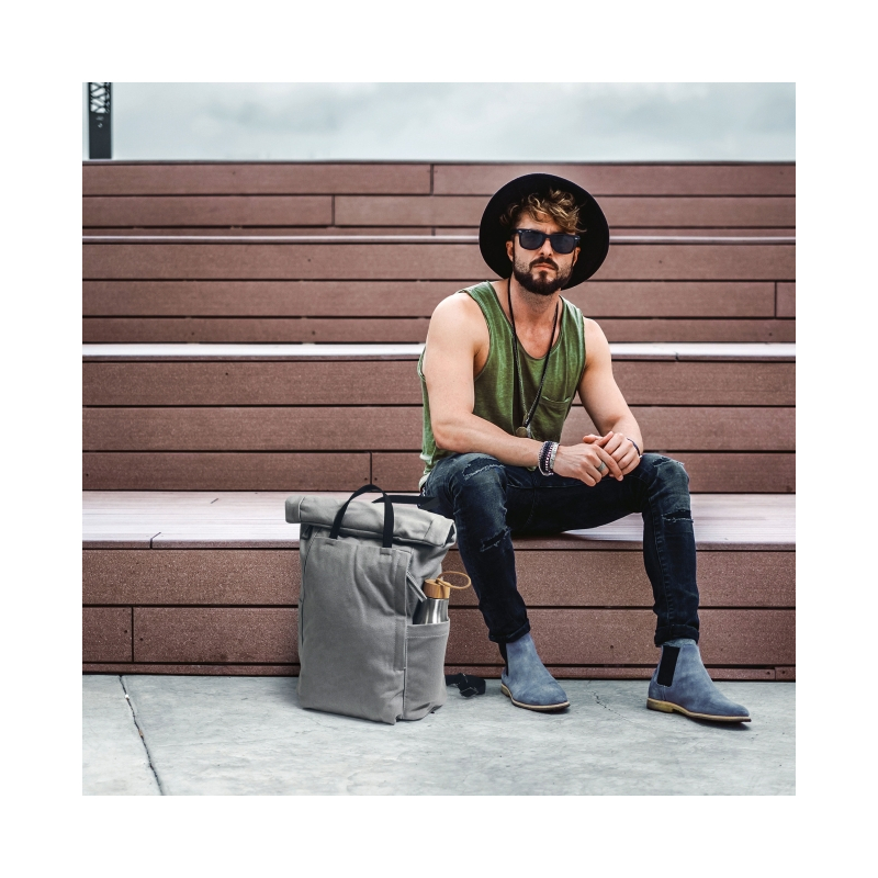 Sac à dos avec fermeture zippée et rabat aimanté.