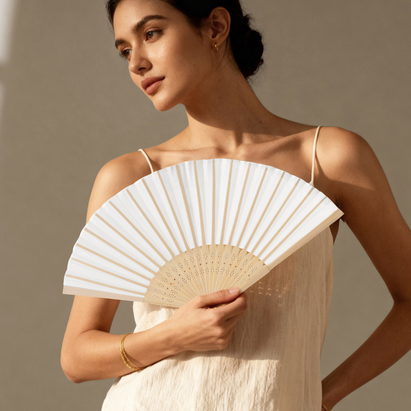 L'éventail de 21 cm en bois de bambou est doté d'une finition sculptée qui lui confère un design très élégant.