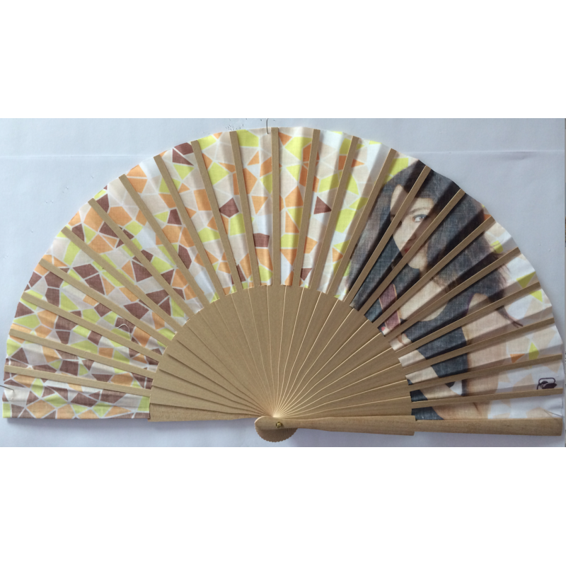 Préparez les journées estivales et personnalisez cet éventail à main fabriqué en polyester et bois naturel.