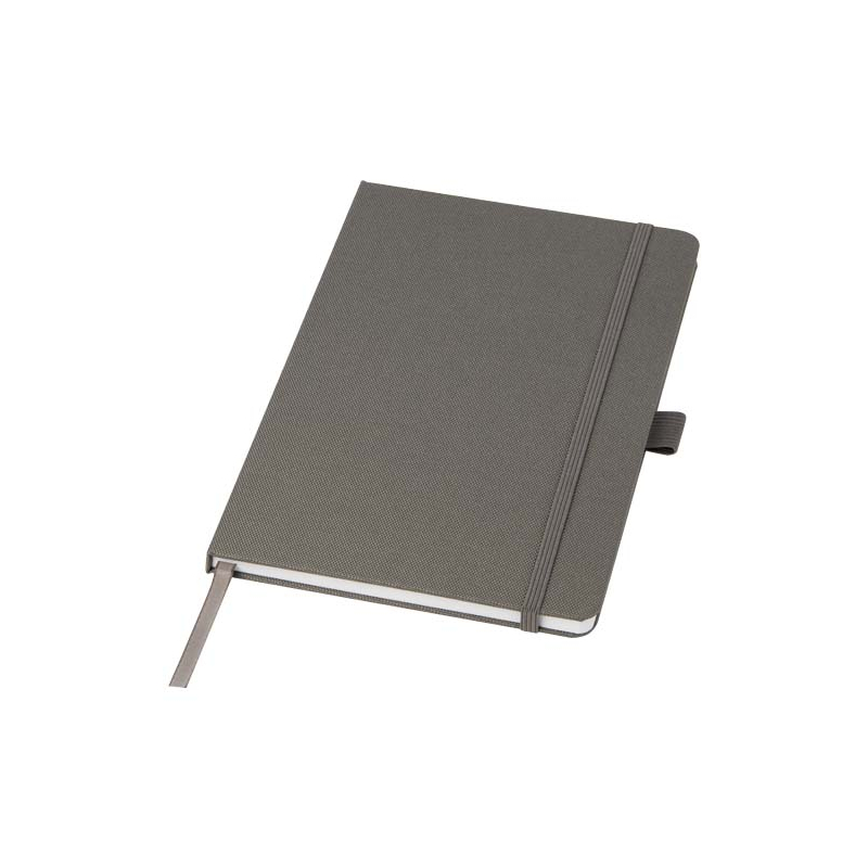 Carnet A5 écologique avec couverture en tissu RPET publicitaire et personnalisable avec votre logo.