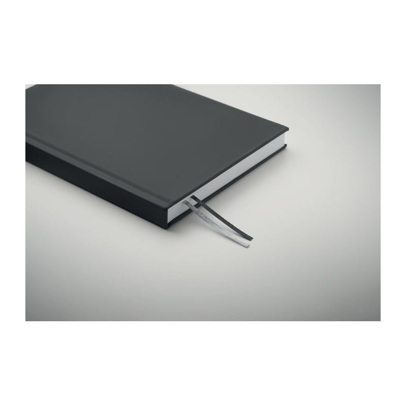 Sa couverture rigide est conçue en polyester post-consommation recyclé (60 %) et polyuréthane (PU) (40 %), offrant un rendu sobre et professionnel.