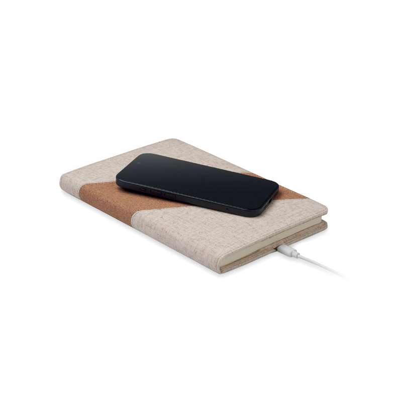 • Carnet A5 avec chargeur sans fil intégré 15W.