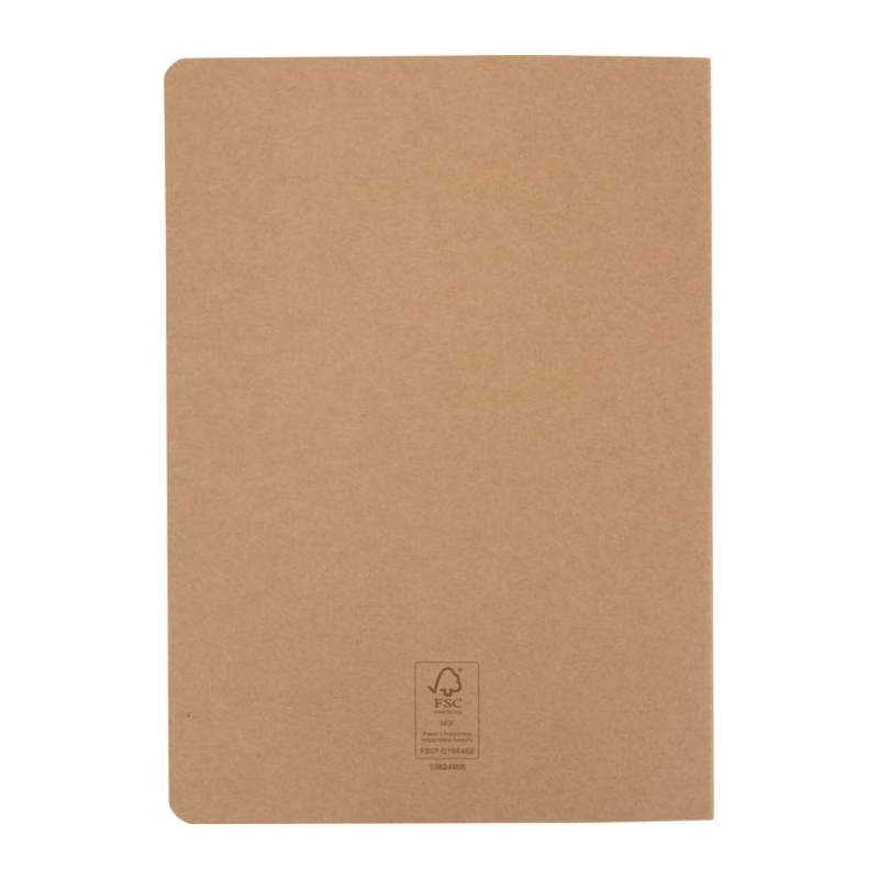 • Couverture souple en carton kraft, piqûre de dos apparente.