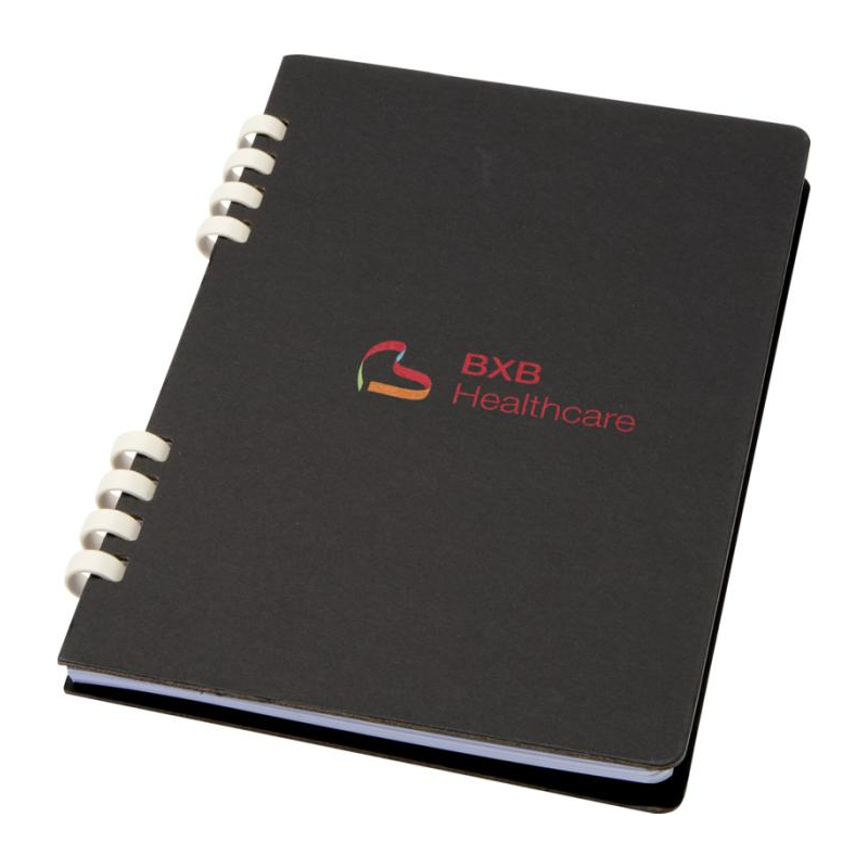 Ce carnet A5 à couverture rigide est fabriqué en papier recyclé certifié RCS et relié par des spirales apparentes sur le côté. Son format compact s’adapte aux réunions, formations et événements corporate.