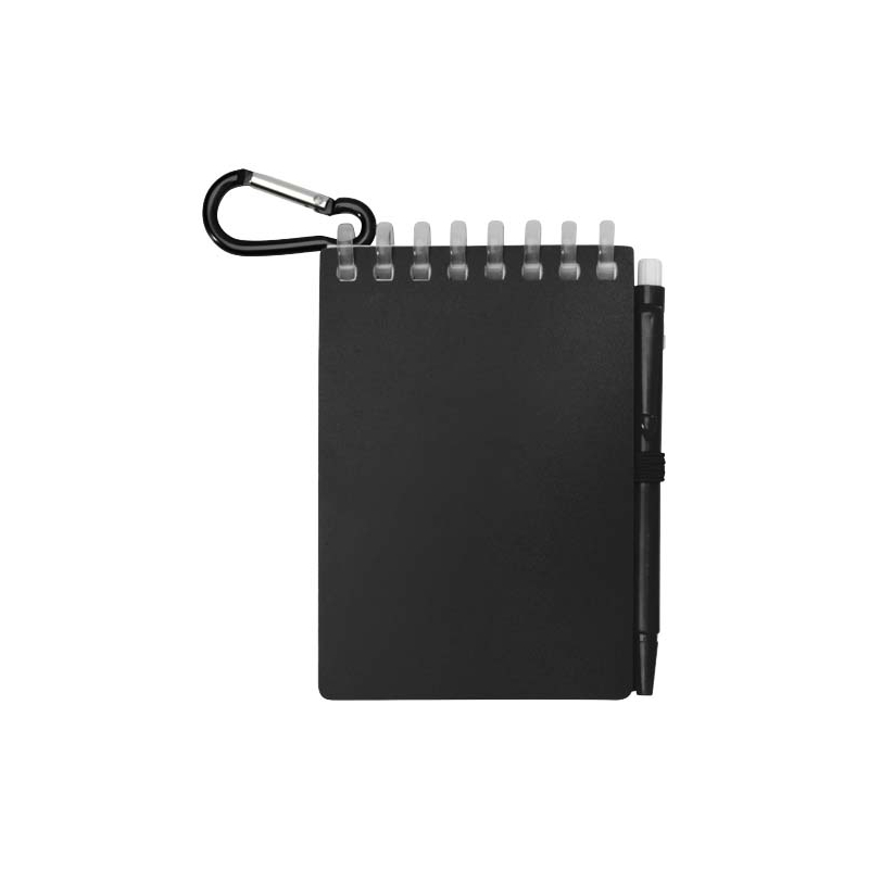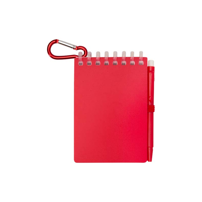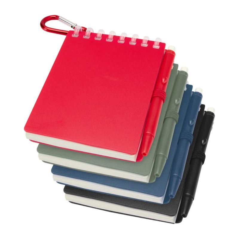 • Éléments : boucle stylo intégrée ; fermeture élastique ; anneau métallique d’attache.