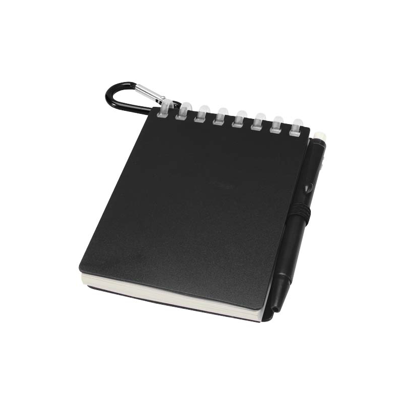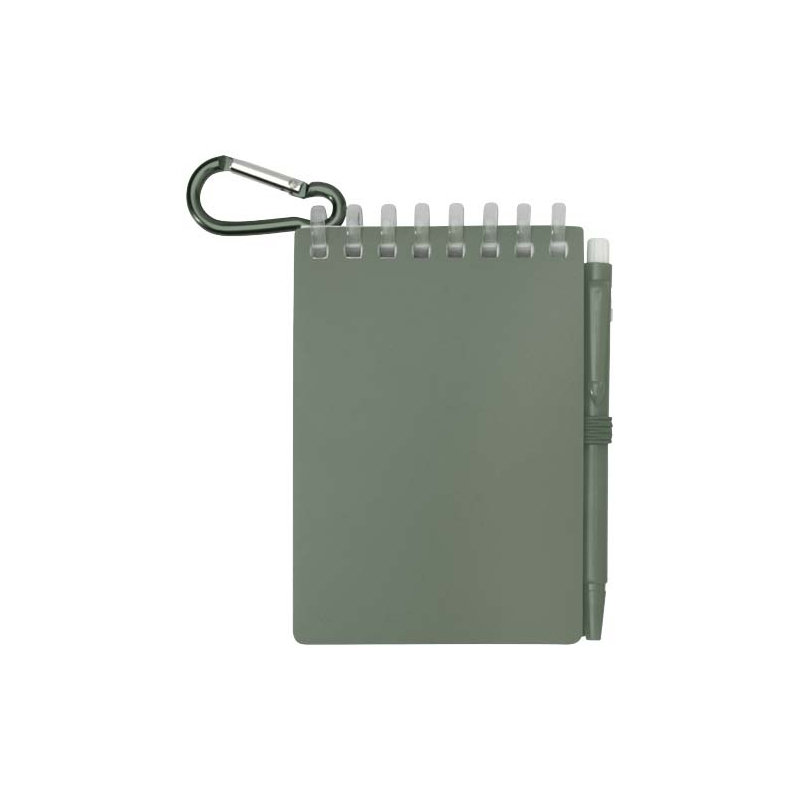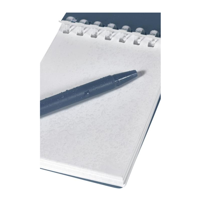 Le carnet comprend 70 feuilles vierges en papier de pierre 120 g/m², résistant à l’eau, et une couverture souple en plastique recyclé. Une boucle latérale maintient le stylo en place pour une utilisation rapide.