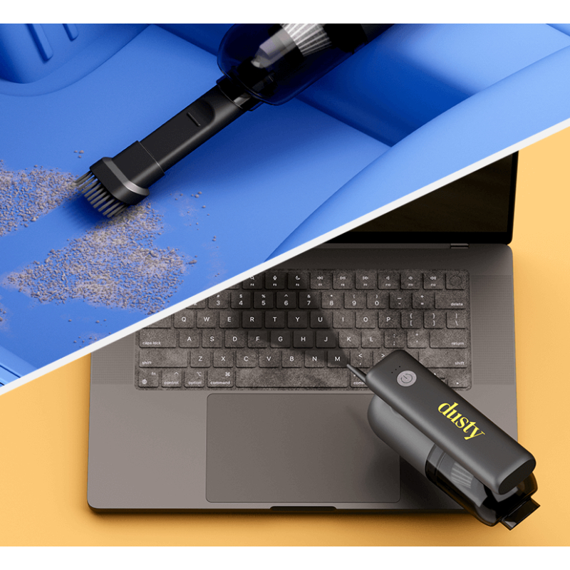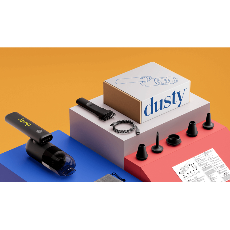 Équipé de plusieurs embouts et d’une lumière intégrée, il devient un accessoire pratique dans de nombreux contextes, faisant de Dusty un support de communication utile et moderne.