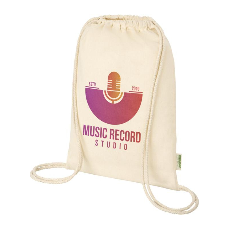 Un sac à cordon en coton bio conçu pour vos distributions événementielles.