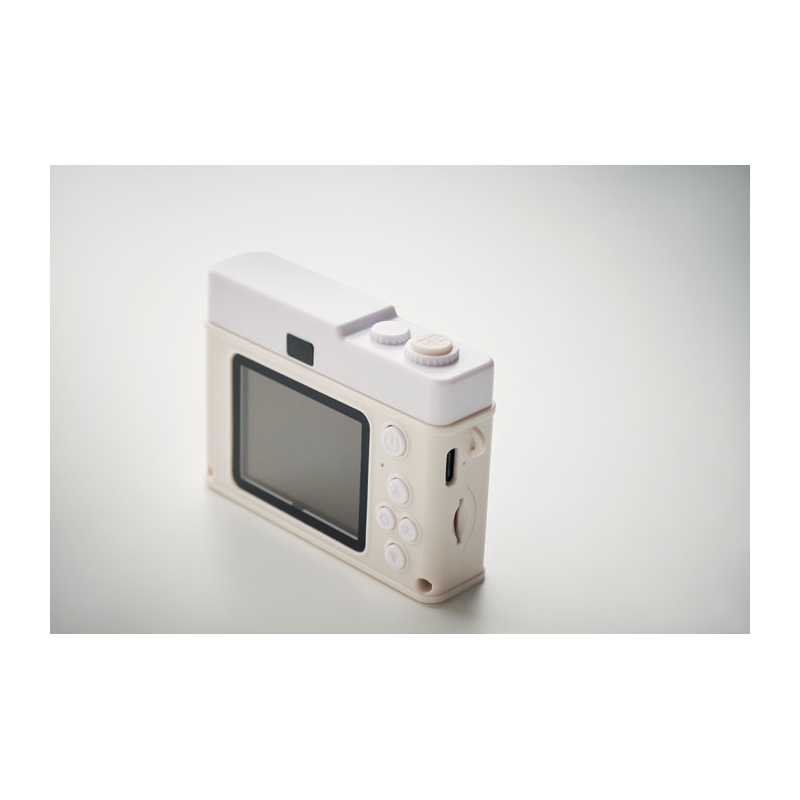 Son format compact intègre un écran LCD 2,0'' pour visualiser les prises de vue en temps réel. L’objectif frontal et le design bicolore offrent une surface identifiable, adaptée à une communication visible.