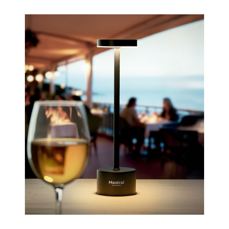 Lampe de table LED publicitaire en aluminium Bistro