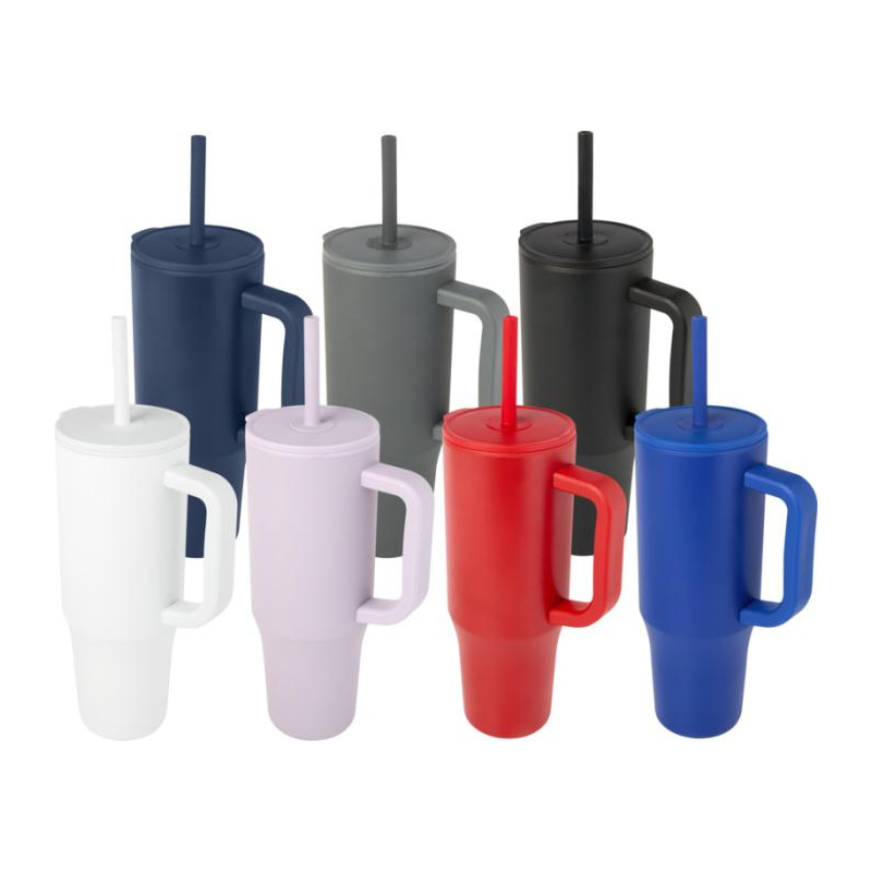 Un gobelet isotherme personnalisable de 900 ml avec paille en silicone alimentaire.