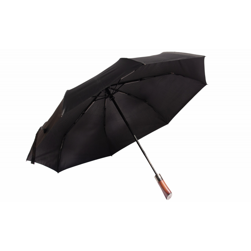Un parapluie Eco Bois personnalisable conçu en rPET hydrofuge avec poignée bois.