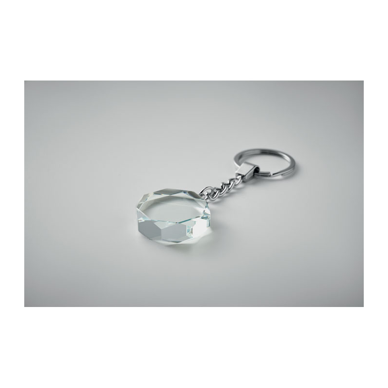 Conçu en verre transparent biseauté, ce porte-clés allie sobriété et raffinement pour accompagner vos publics au quotidien.