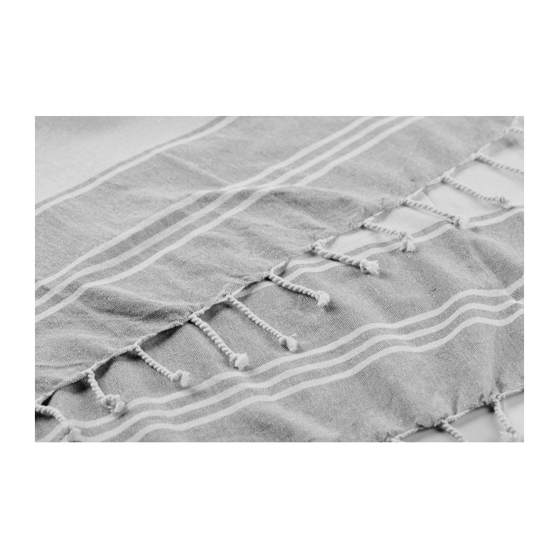 • Finitions serviette : franges aux extrémités, bandes tissées décoratives.