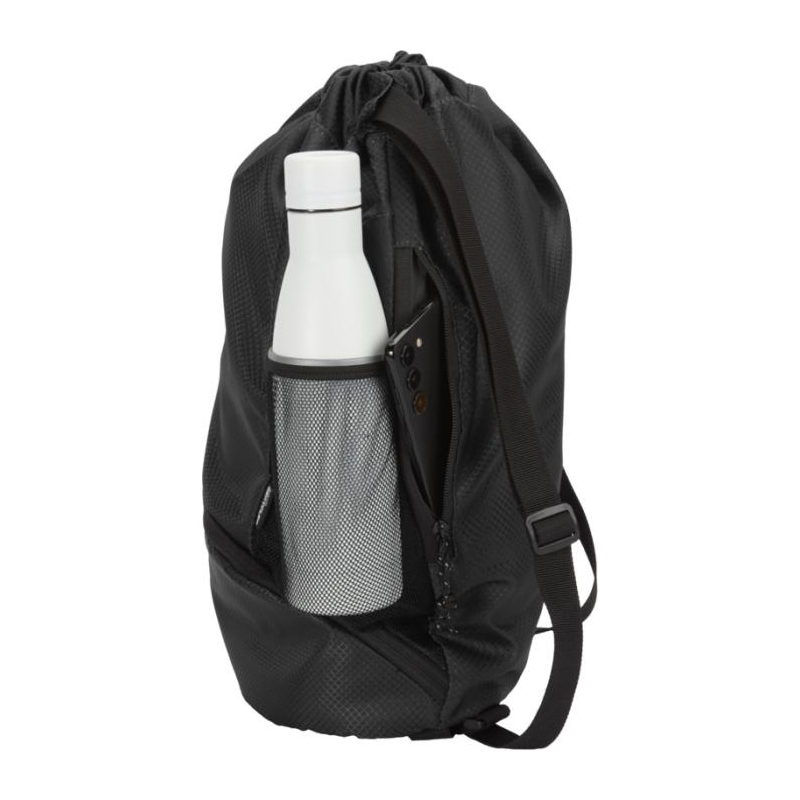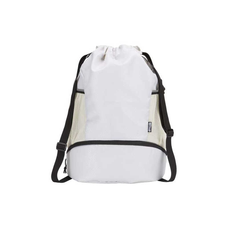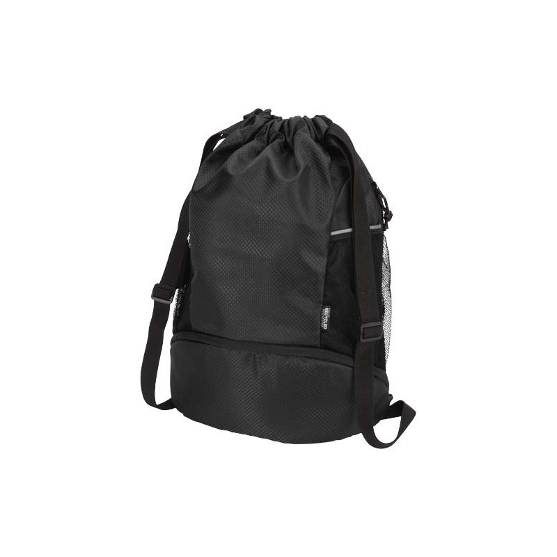 Son compartiment inférieur séparé permet de ranger chaussures ou vêtements humides, tandis que ses poches latérales en maille et sa poche zippée dissimulée facilitent le rangement des accessoires. Fonctionnel, robuste et identifiable, il devient un **support de communication actif** et un allié du quotidien pour vos équipes ou vos événements.