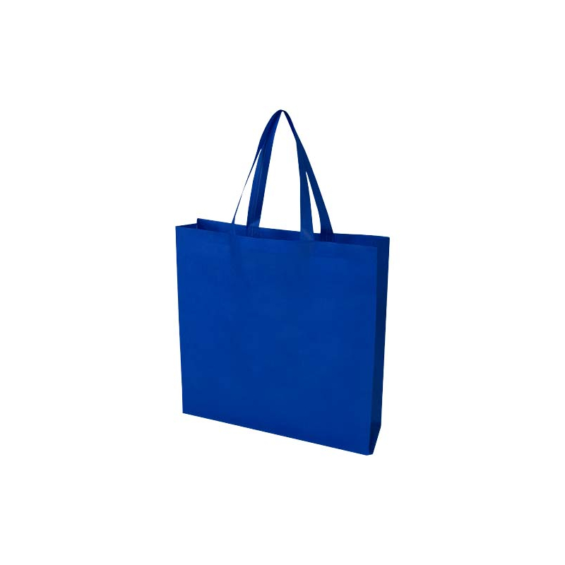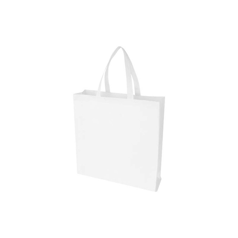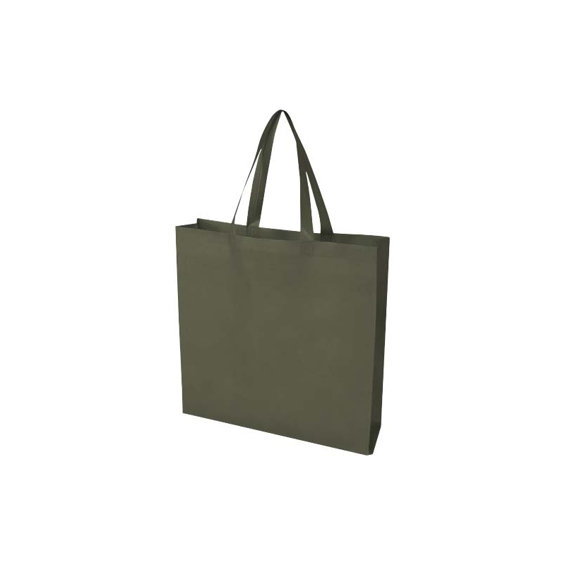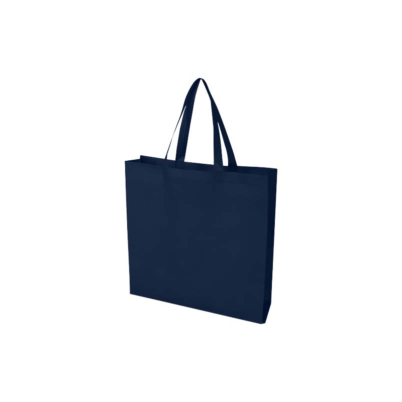 Fabriqué en RPET non tissé certifié GRS, il combine résistance et légèreté grâce à sa conception thermoscellée par ultrasons, sans couture apparente. Ses soufflets latéraux et sa base plate augmentent la capacité de rangement, tandis que ses poignées de 30 cm assurent un port confortable et stable.