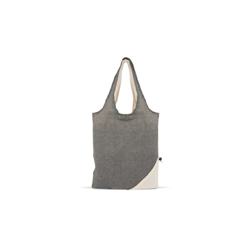 Sac shopping promotionnel et personnalisable, pliable en coton 105 gr/m² avec anses courtes et cordon de serrage sur la poche.