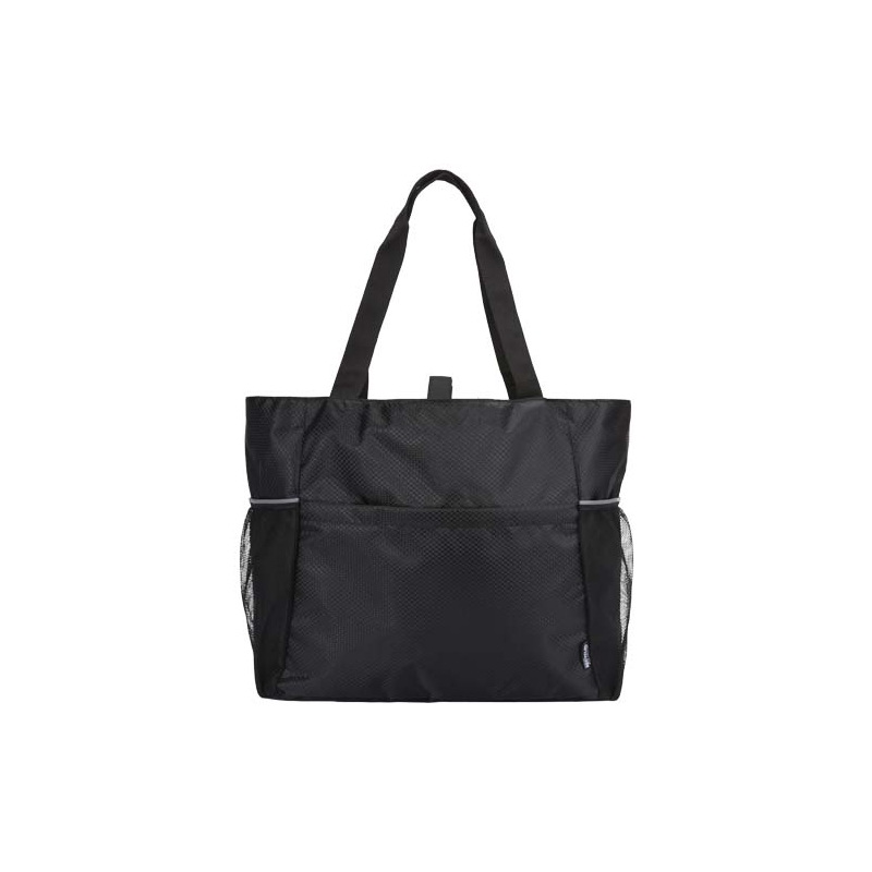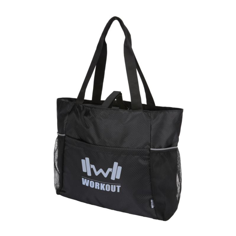 Son compartiment principal zippé et ses poches d’organisation offrent un rangement structuré pour vêtements, accessoires et effets personnels. Les sangles élastiques à fermeture auto-agrippante permettent de transporter facilement un tapis de yoga ou de plage, faisant de ce sac un **support média utile et mobile** à forte visibilité quotidienne.