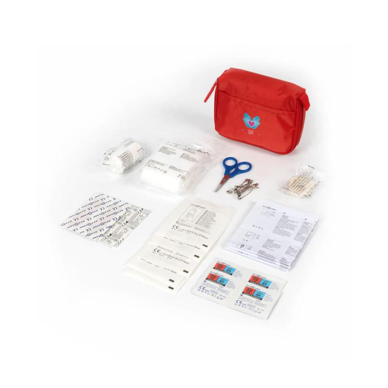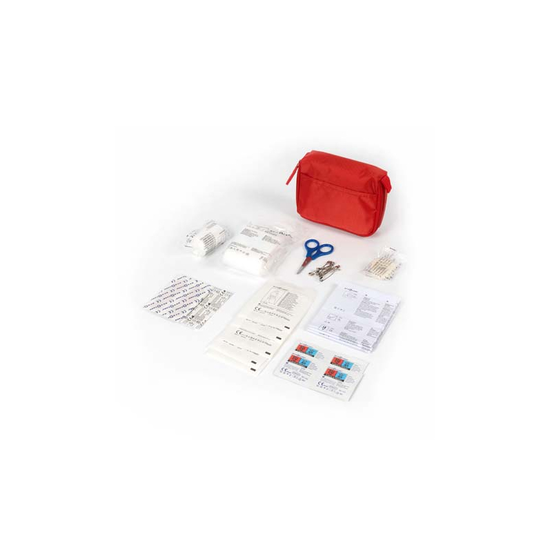 • Contenu : 31 pièces (pansements, écouvillons, tampons nettoyants, épingles, ciseaux, bandages, sparadrap, notice).