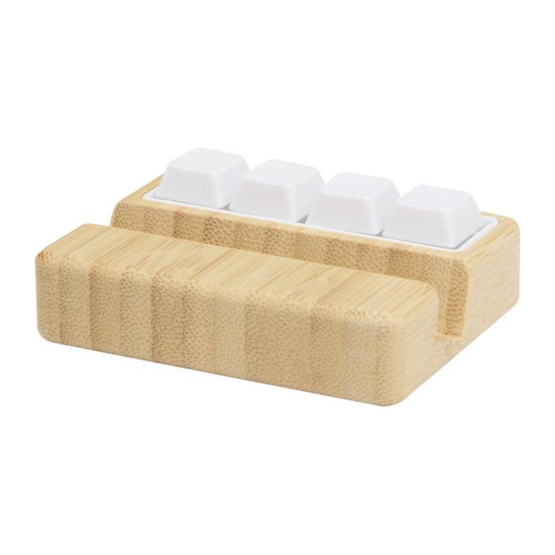 Fabriqué à partir de plastique recyclé et de bambou issu de ressources gérées de manière responsable, le support Algol associe stabilité et détente. Son fidget intégré, composé de quatre touches à effet clavier, aide à canaliser le stress et à maintenir la concentration au travail ou à l’étude.