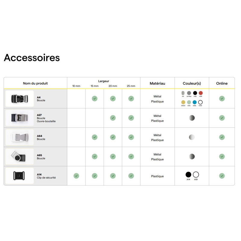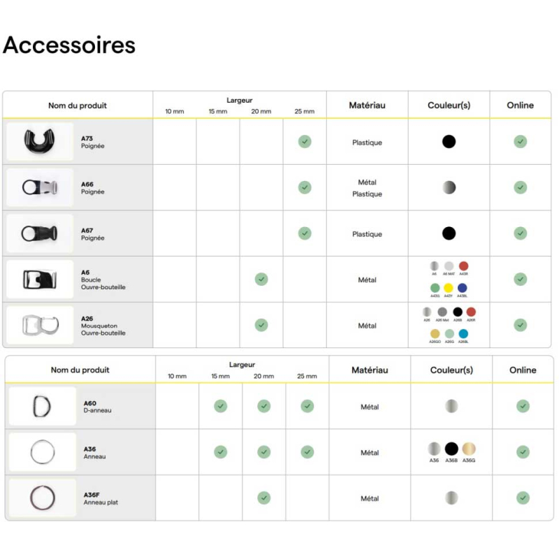 • Largeurs disponibles : 20 mm ou 25 mm.