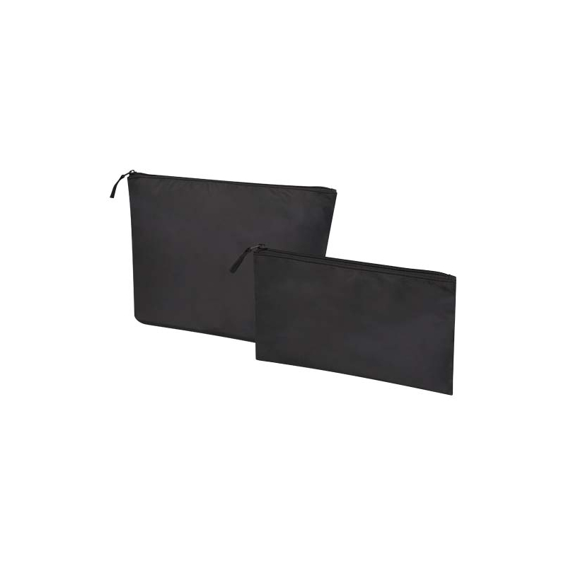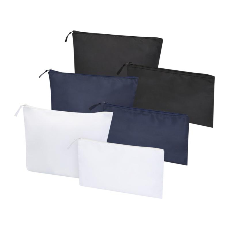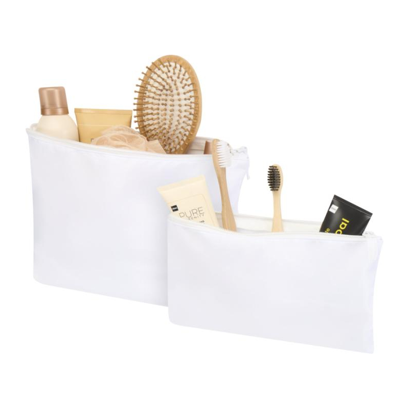 Un set de trousses de toilette personnalisées en matière recyclée, pratique et responsable pour vos dotations professionnelles.