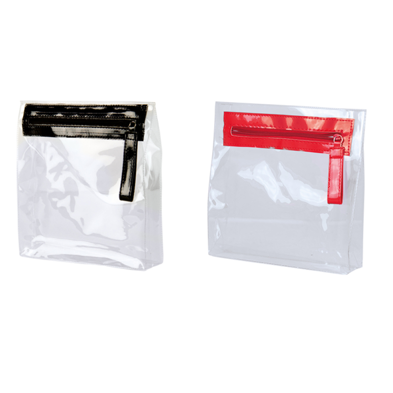 Trousse de toilette personnalisable hermétique en PVC transparent.