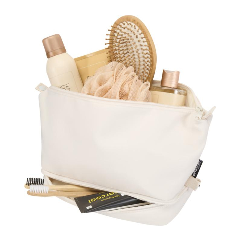 Une trousse de toilette publicitaire recyclée, pensée pour conjuguer praticité, organisation et visibilité responsable.