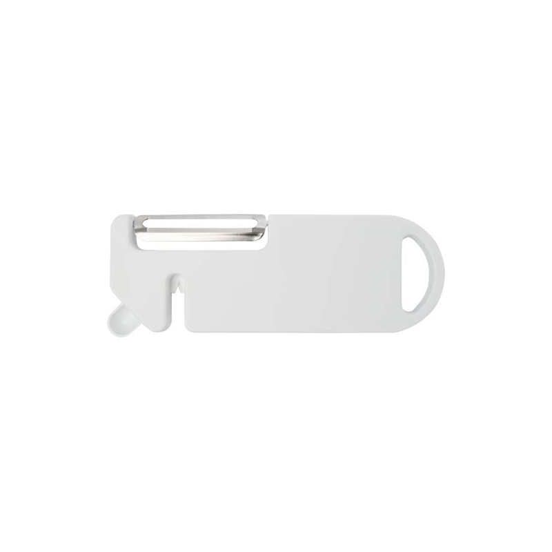 Le modèle Kipper regroupe quatre fonctions essentielles dans un format compact : éplucheur, décapsuleur, aiguiseur de couteau et embout pour retirer les imperfections des légumes. Sa conception ergonomique assure une prise en main sûre et agréable.