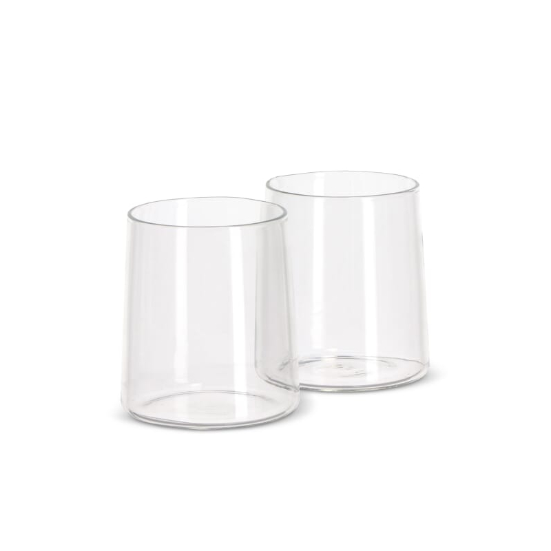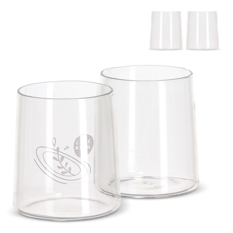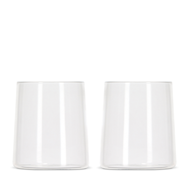 Un set de deux verres en borosilicate conçu pour apporter une touche moderne et épurée aux espaces de travail et d’accueil.